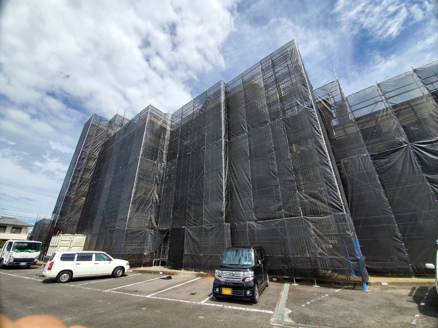 足場工事の費用相場に幅があるのは、現場ごとの条件が大きく異なるためです。たとえば、同じ二階建て住宅でも、敷地に余裕があって作業しやすい家と、道路に面していて搬入が難しい家では必要な手間が変わります。費用に影響しやすいポイントとしては、建物の高さ、外周の長さ、足場の種類、飛散防止シートの有無、運搬車両の入りやすさなどが挙げられます。